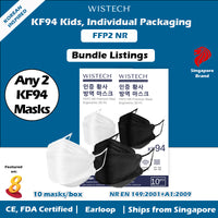 Bundle Includes : 2 Individually Sealed KF94 Masks (Black/White)