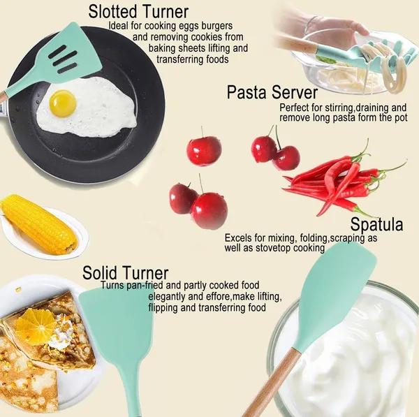 High Heat Resistant: The silicone cooking utensil set is resistant to 446℉-482℉/(-40℃-230℃)heat, so you don't have to worry that it will melt when you accidentally leave it in the pot for a while. Soft silicone won't scratch your expensive non-stick cookware, pots and pans.