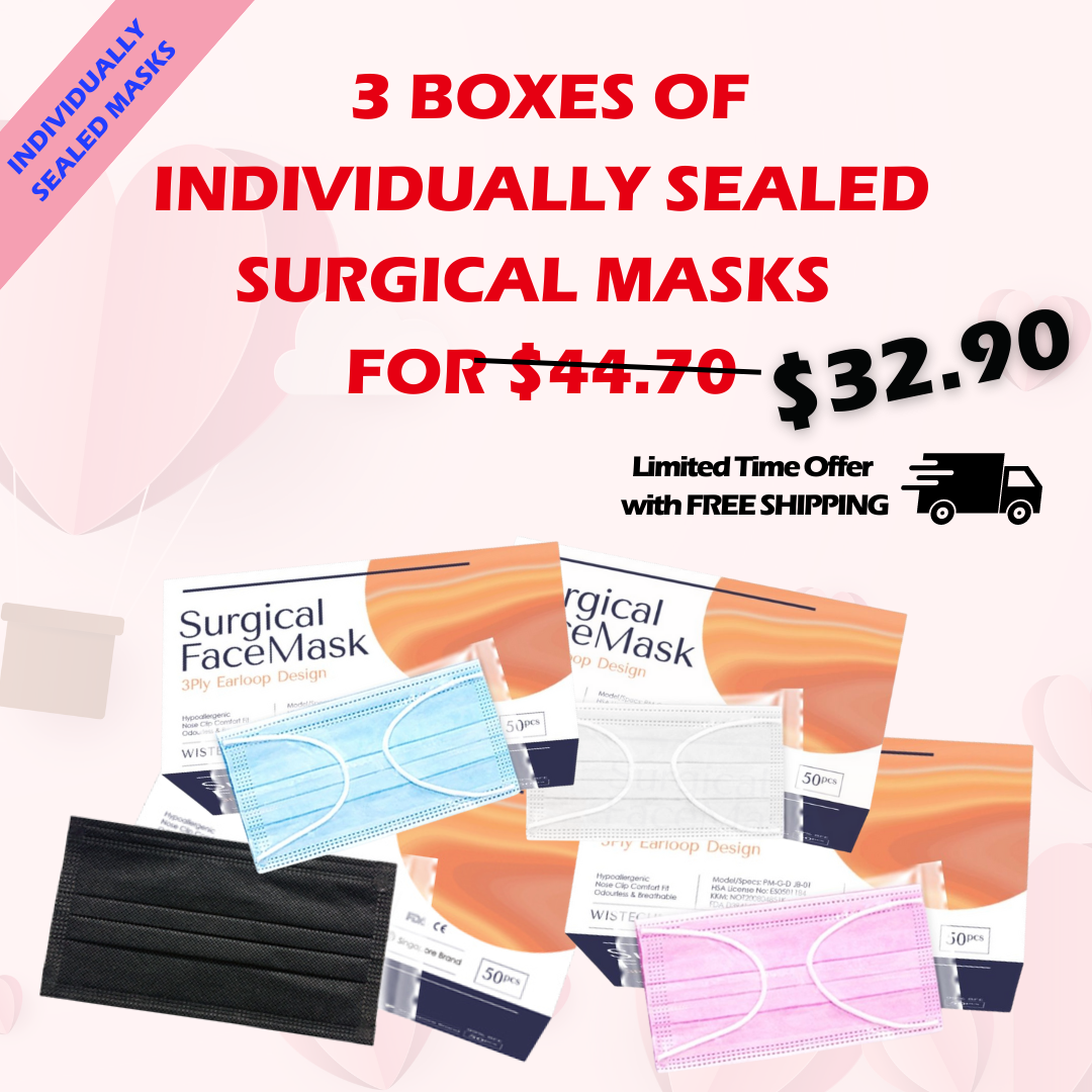 3 BOXES OF INDIVIDUALLY SEALED SURGICAL MASKS AT ONLY $29.9 WITH FREE SHIPPING