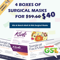 Mix and Match of any 4 Boxes of Surgical Masks for $40 (USP: $59.60)