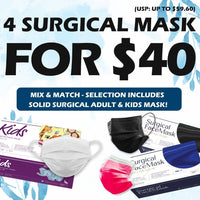 Mix and Match any 4 Boxes of Surgical Masks for $40 (USP: $59.60)