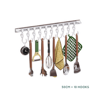 Available in 40cm and 50cm lengths, each set includes 10 sliding S-shaped hooks that move freely along the bar, giving you customizable storage for coats, towels, kitchen utensils, and more. With a weight capacity of up to 5kg, they provide sturdy support without the need for drilling or wall damage.