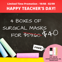 Mix and match any 4 boxes of surgical masks and free one (1) SHIORA pure essential oil (worth $25.90) with free shipping at only $40.