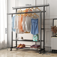 Portable Clothes Rack with Wheels, Adjustable, Foldable Dual-Rod Indoor Clothing Hanger