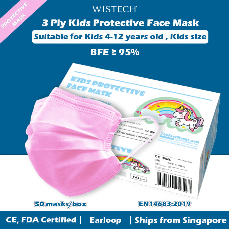 ![[Ready Local stocks] Pink 3 Ply Kids Protective Face MASK, TheFastMask, Kids Disposable Mask, 50 pieces - Wistech Singapore](http://wistech.com.sg/cdn/shop/products/5_7f257974-60fa-45ce-a32a-1a151b1826de.jpg?v=1646390505&width=1445)