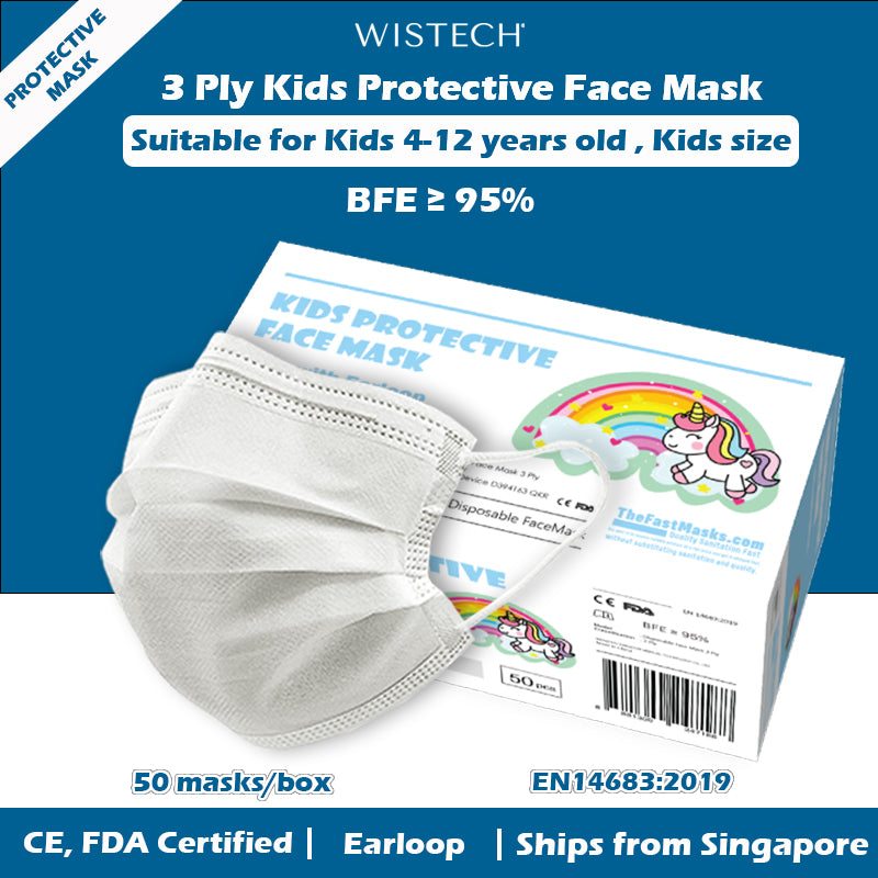 ![[Ready Local stocks] White 3 Ply Kids Protective Face MASK, TheFastMask, Kids Disposable Mask, 50 pieces - Wistech Singapore](http://wistech.com.sg/cdn/shop/products/5_a23d581a-0910-4c1f-8240-8e35b81a4297.jpg?v=1646390540&width=1445)