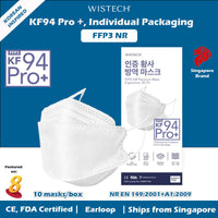 (White) Wistech Individual Sealed KF94 Pro+ 10 pieces, FDA CE Approved, Wistech Singapore