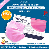 Wistech 3-Ply Surgical Face Mask (Pink)