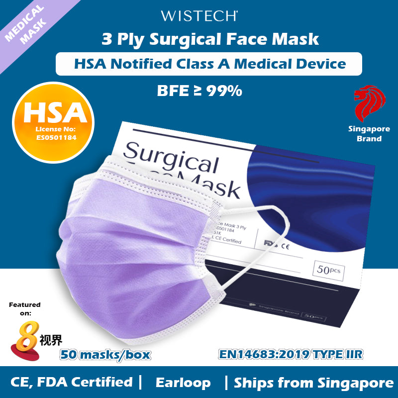 Wistech 3-Ply Surgical Face Mask (Purple)